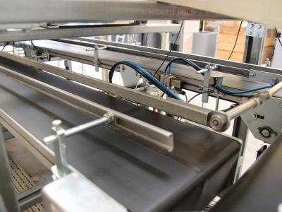 Linia działa dwustronnie z modułem kolekcjonującym na wyjściu, automatyczne podawanie przepakowywanego produktu do stołów roboczych, automatyczne odbieranie lub podawanie pustych opakowań.